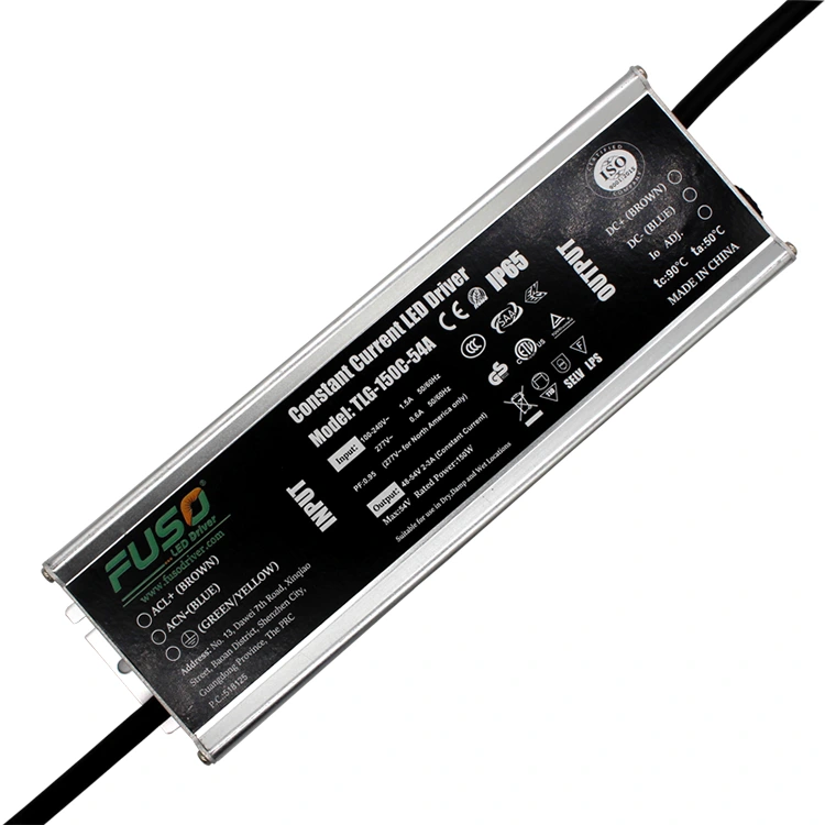 The TLG-150C-54A 150W constant current LED power supply is designed for efficiency, featuring input AC100-277V, output voltage of 48-54V, and a robust 5-year warranty. Fuso has been at the forefront of LED power supply manufacturing for 18 years, offering tailored solutions to meet specific client demands. With a strong presence in European, American, Asian, and Australian markets, we welcome long-term collaborations.